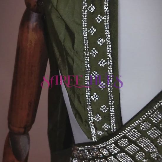 Jet Black|Premium Quality Soft Silk|Heavy Border Stonework|&Micro Stonework All Over Body