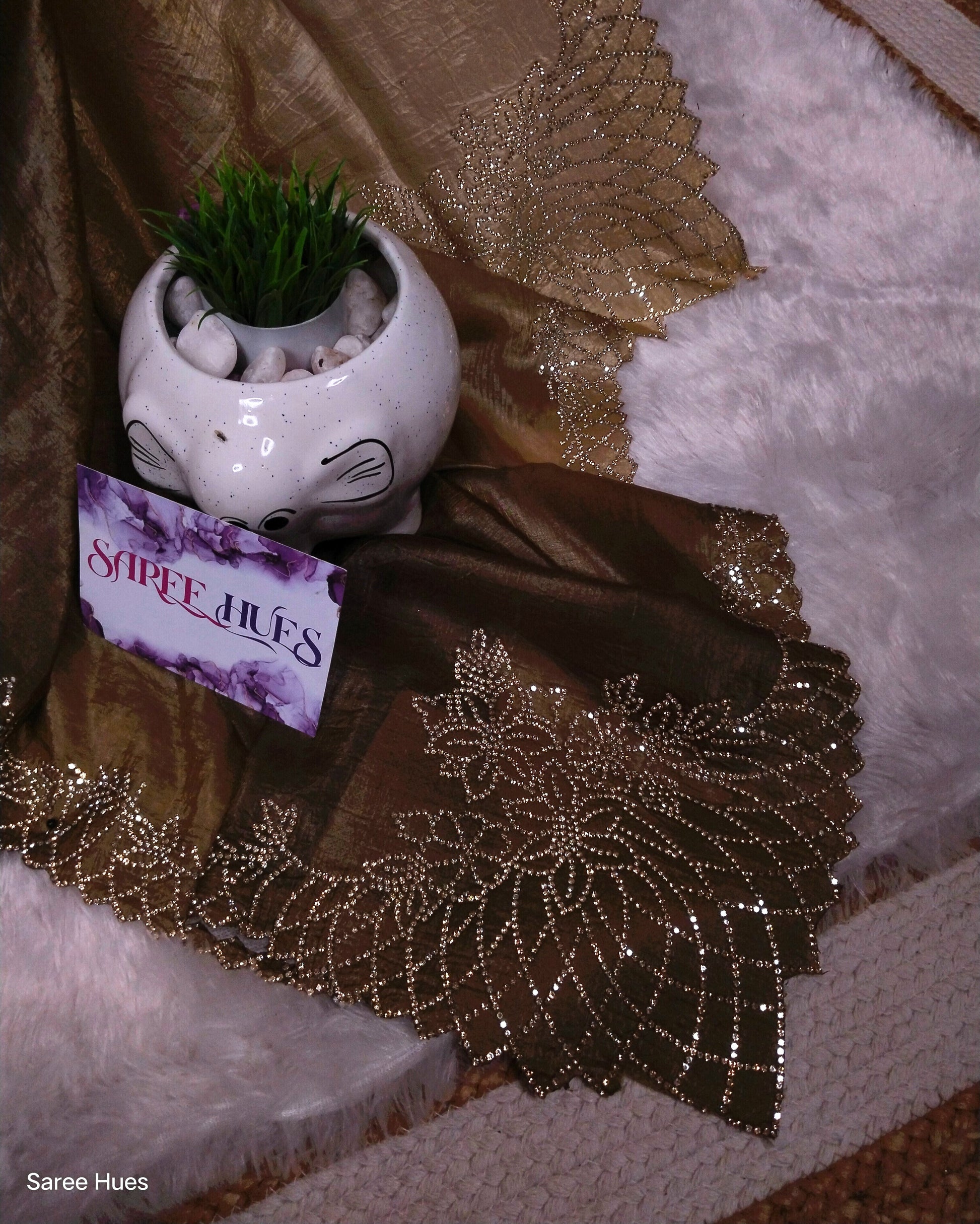 Antique Gold Stone Work Saree – Premium Designer Party Wear Saree