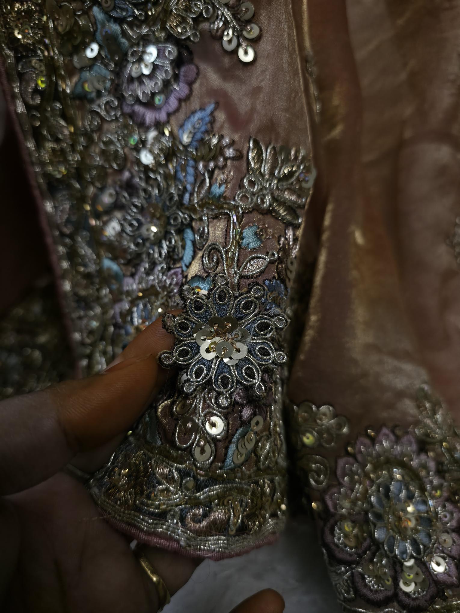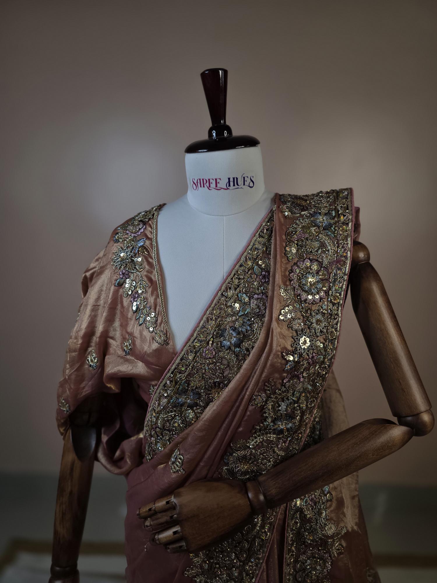"Rosewood Regal Hand-Embroidered Saree – A Masterpiece of Timeless Elegance”