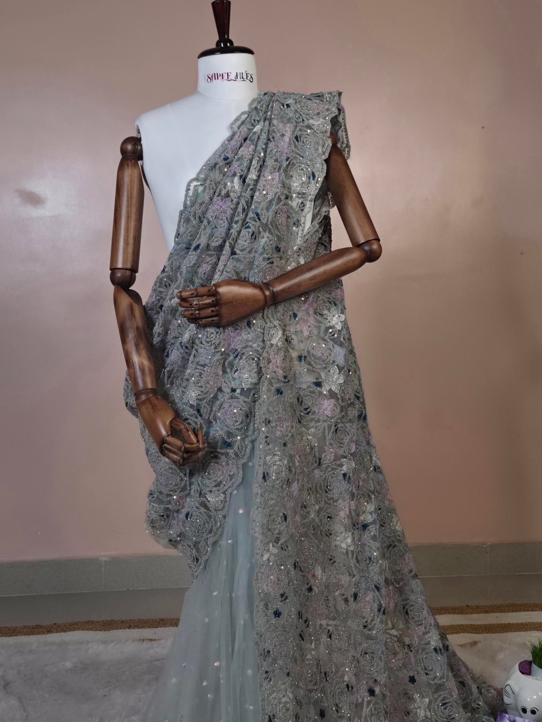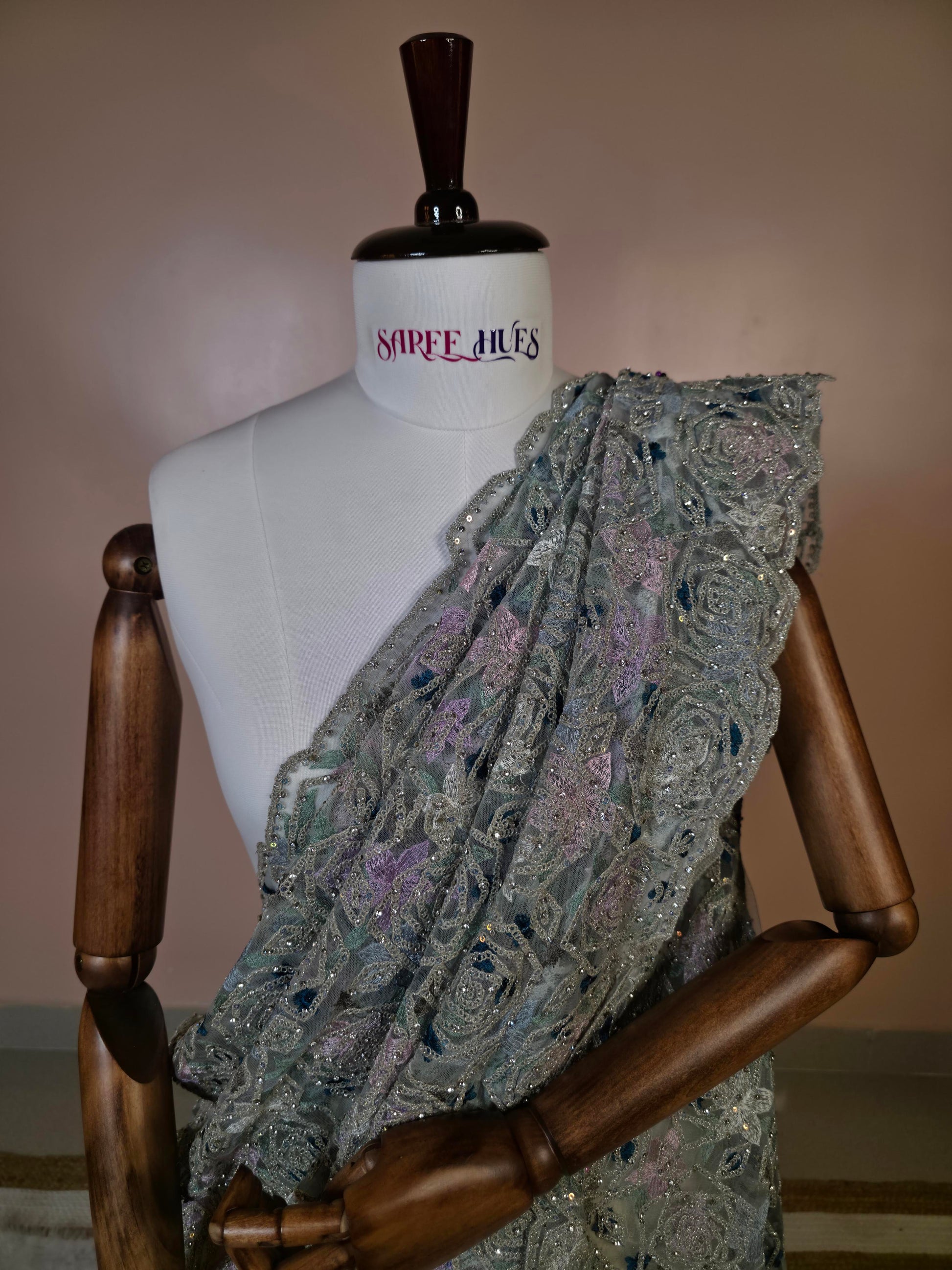 Icy Mist Sequin-Encrusted Designer Saree – A Dreamy Blend of Elegance & Sparkle