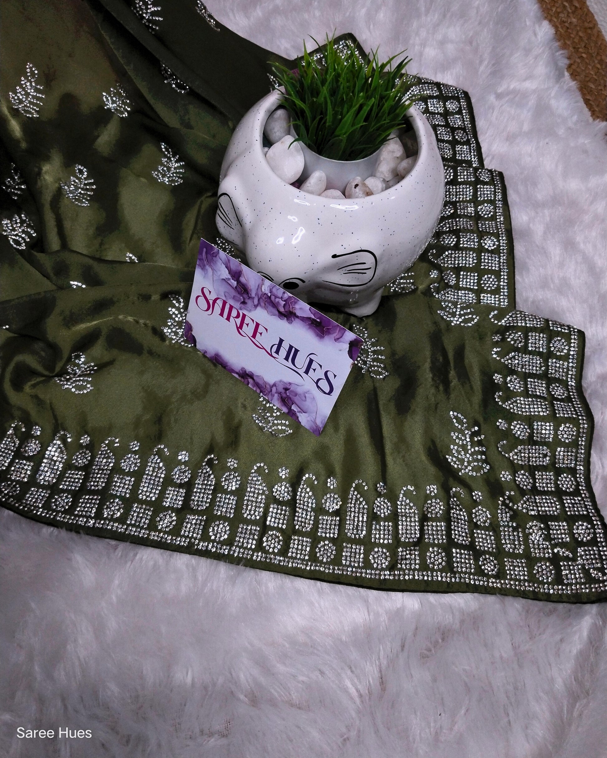 Mehandhi Green|Reception Wear|Party Wear|FullBody Stonework Saree