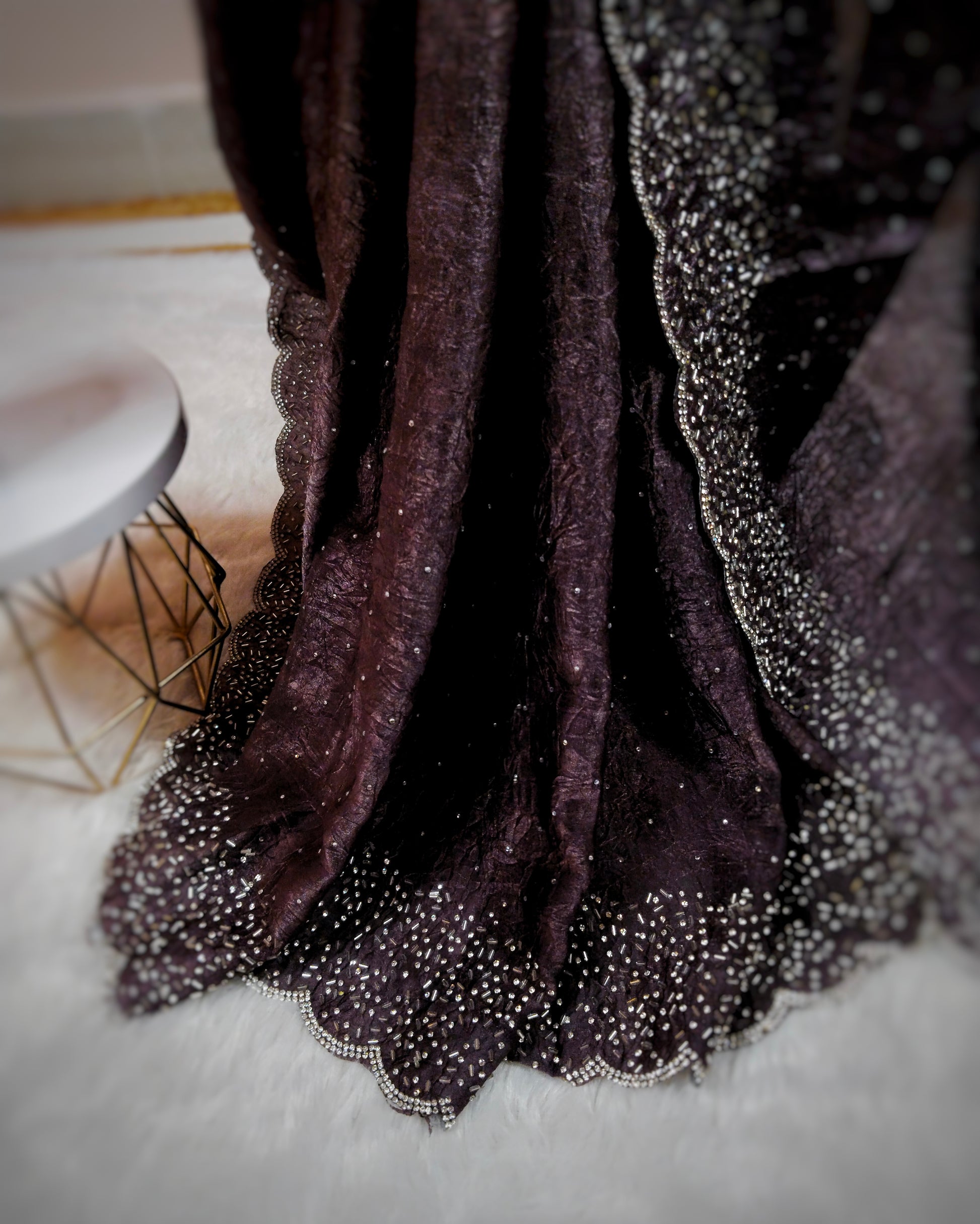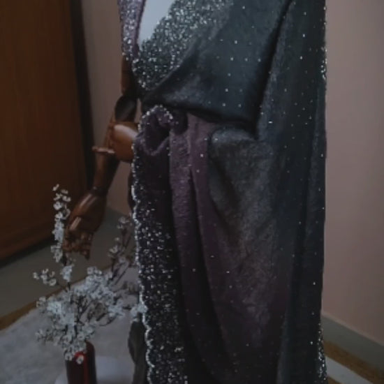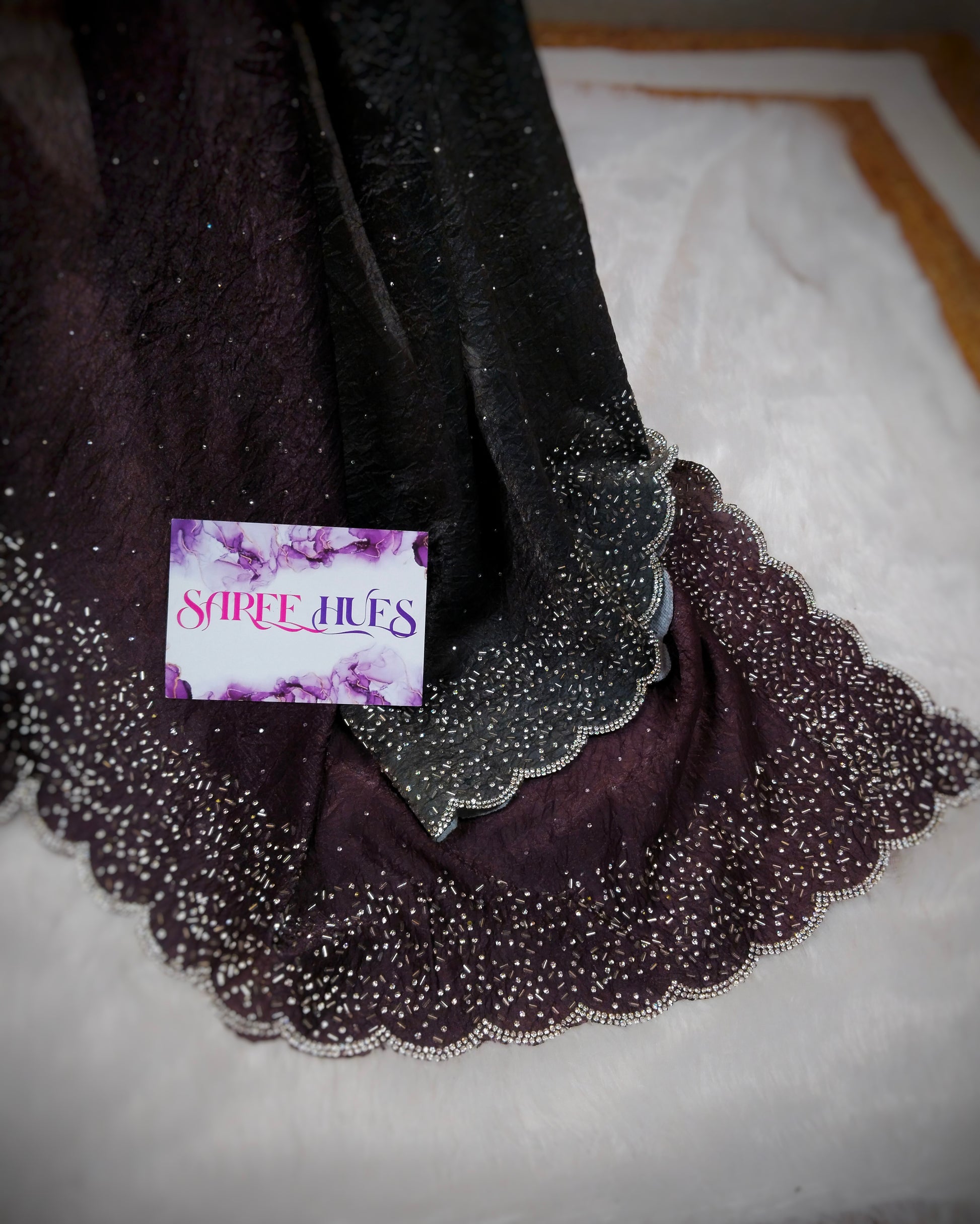 Two Tone Dual Shade Elegant Saree On Crushed Fabric With Scallop Border