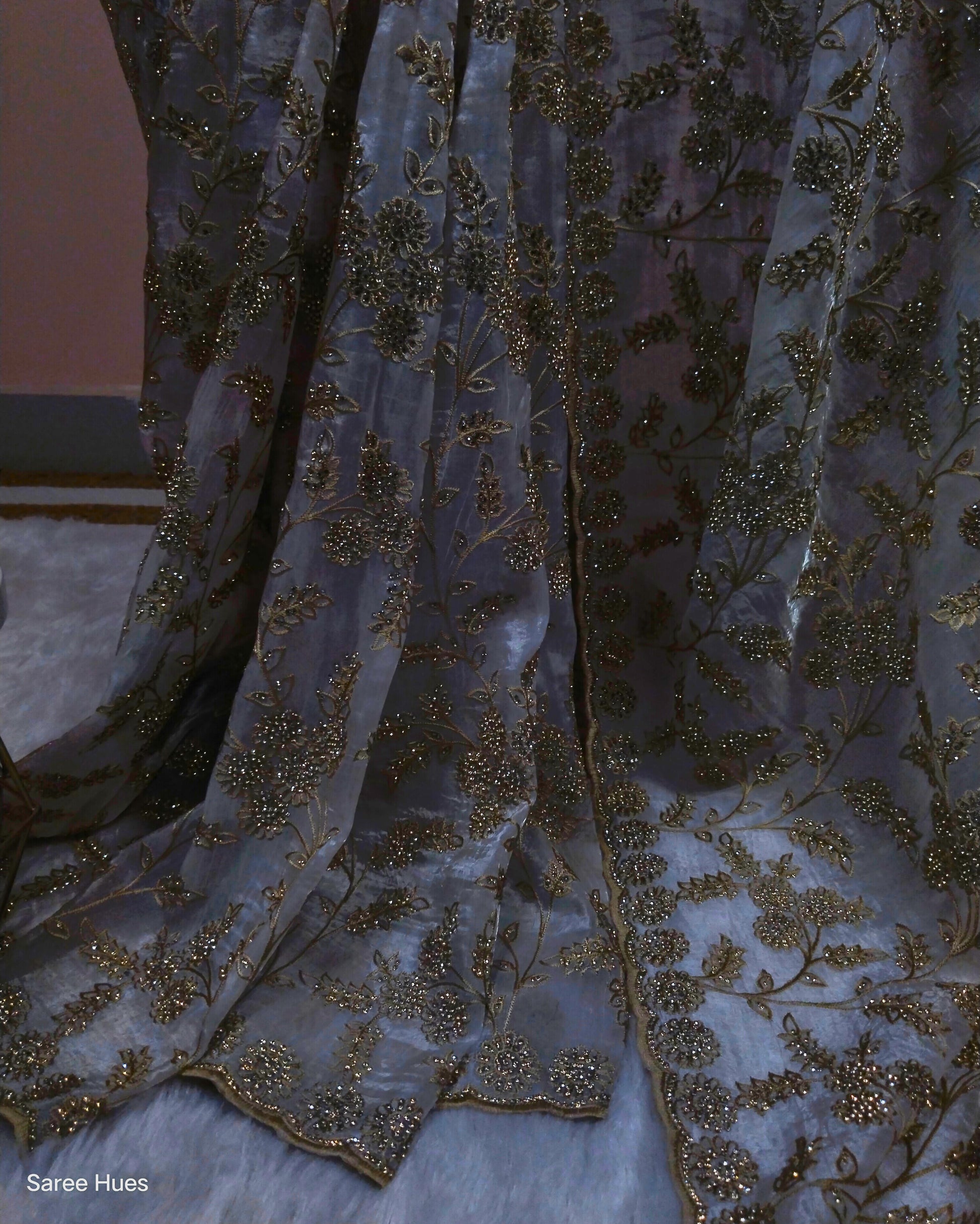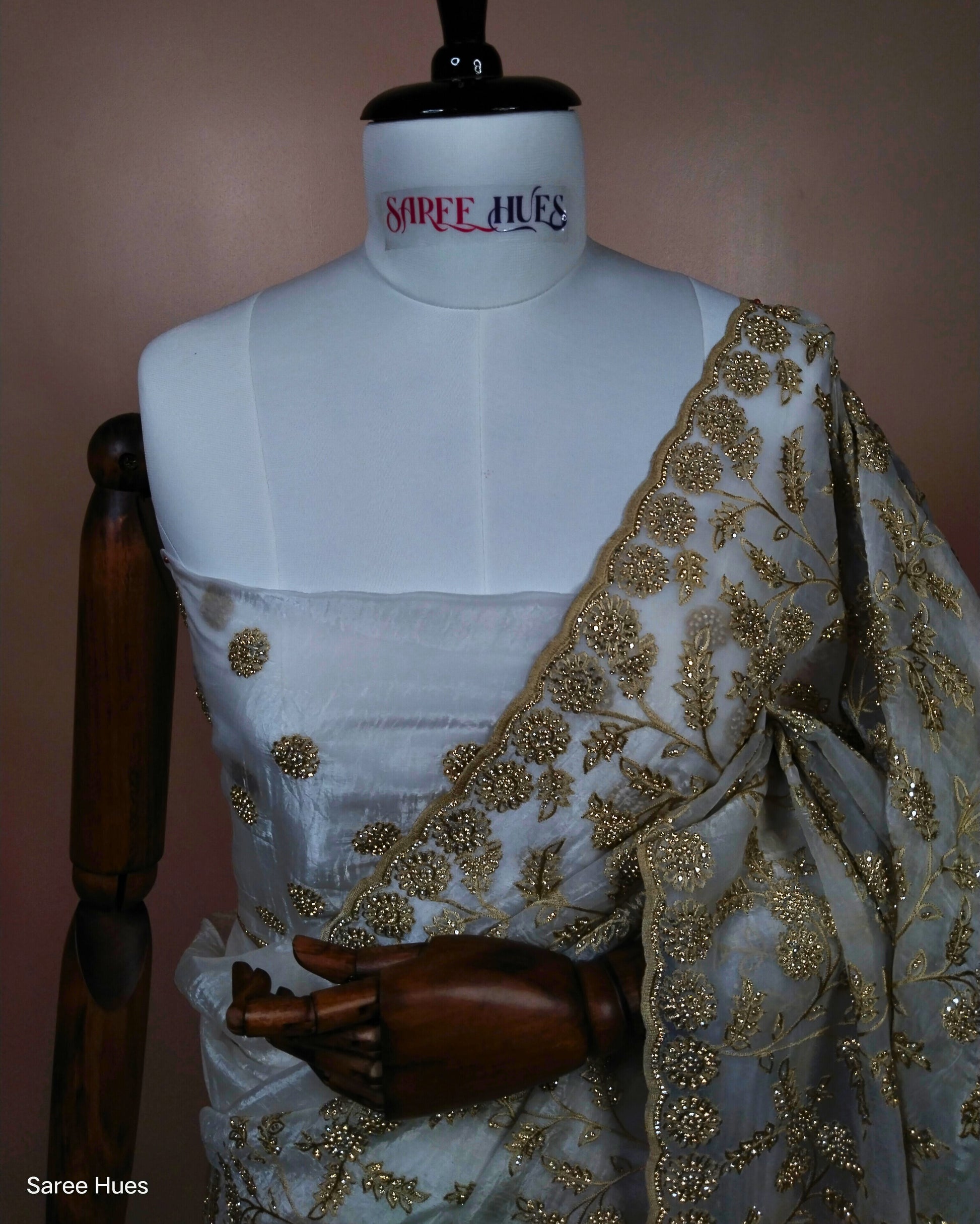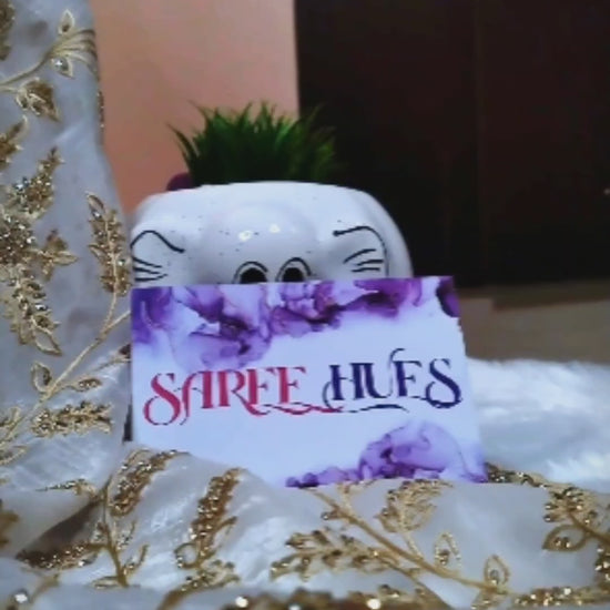 |Full Body StonewWhite Organza With Gold Embroidery Stoneworkork+Embroidery